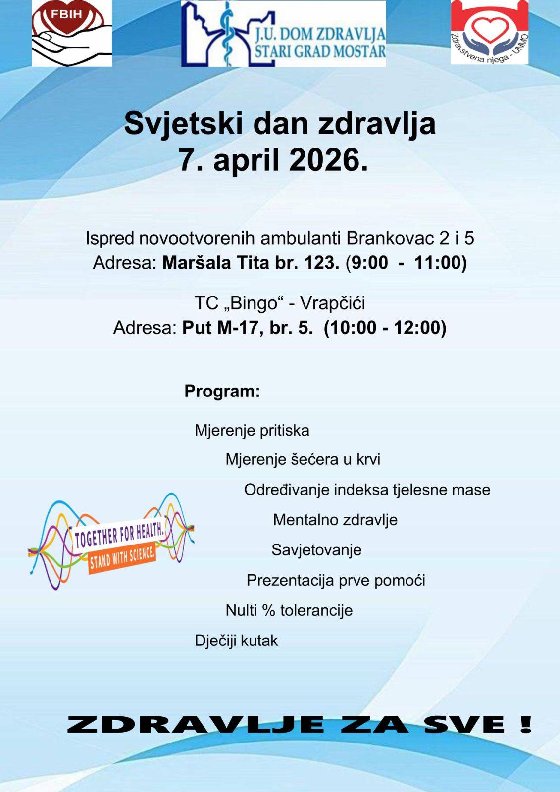 Dom zdravlja Stari grad Mostar, u saradnji sa studentima Studija Zdravstvena nje ...